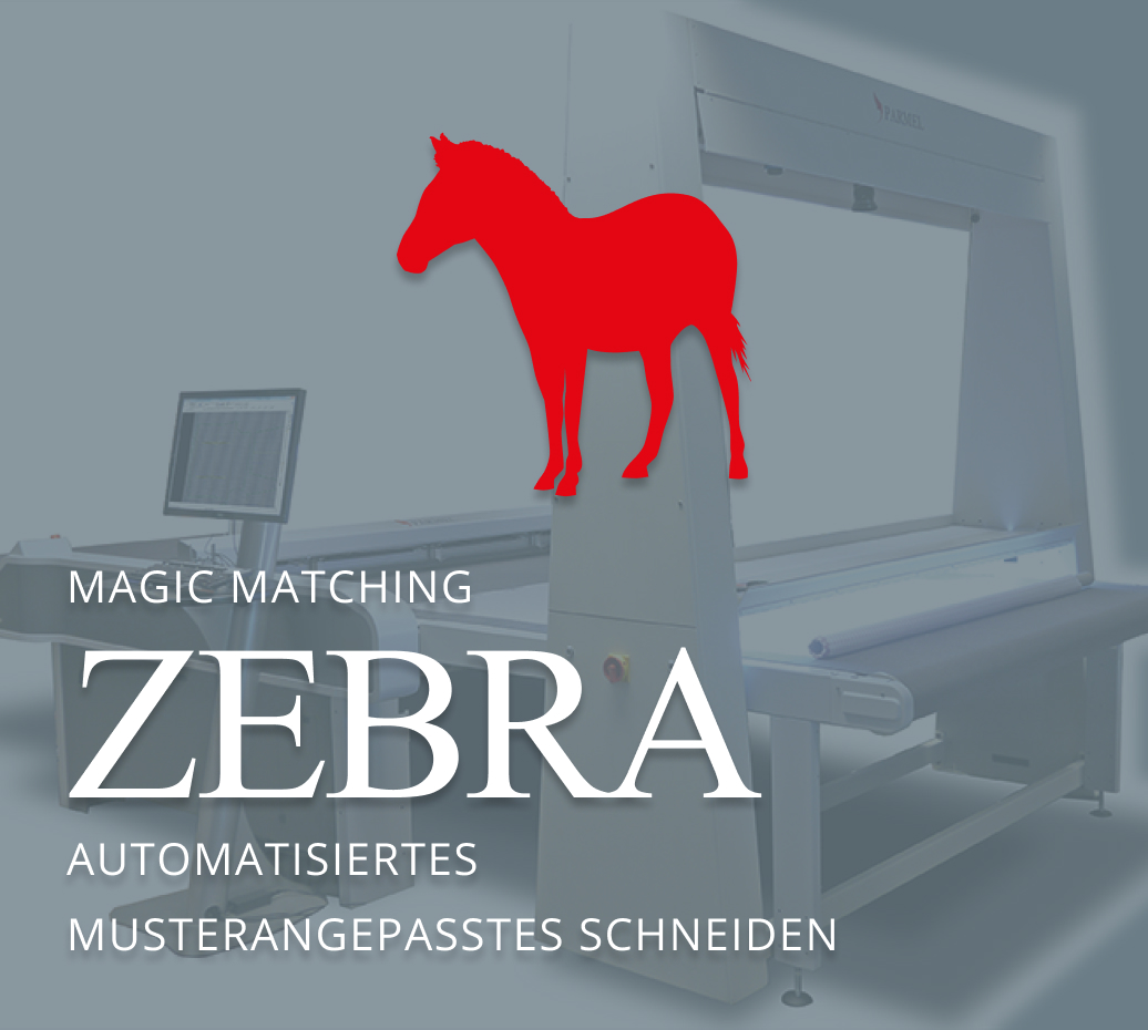 ZEBRA schafft über die intelligente Bilderkennung die Voraussetzung, die Intervention des Menschen beim mustergerechte Zuschnitt abzulösen. Das bedeutet, dass mit ZEBRA in nahezu allen praktischen Anwendungsfällen von rapportgerechtem Zuschnitt (z. B. Bekleidung, Automobil, Polstermöbel, Digitaldrucke) vollautomatische Abläufe realisiert werden.